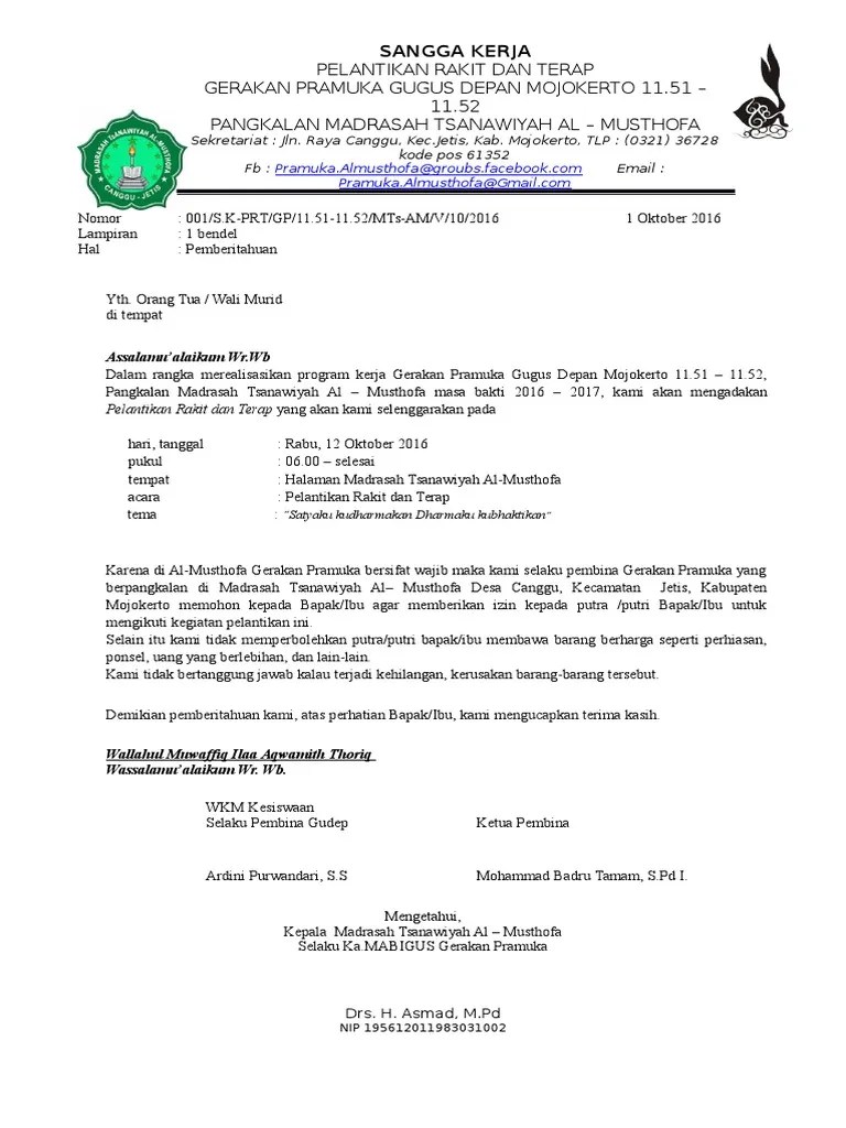 Turut hadir dalam undangan ketua pn parimo, kajari parimo,. Akan tetapi, anda kemungkinan belum banyak mengetahui . Kepada orang tua tentang kegiatan pelantikan pramuka dibawah ini. 20 contoh surat undangan resmi dari berbagai instansi atau. Gerakan pramuka gugus depan 02161/02162.